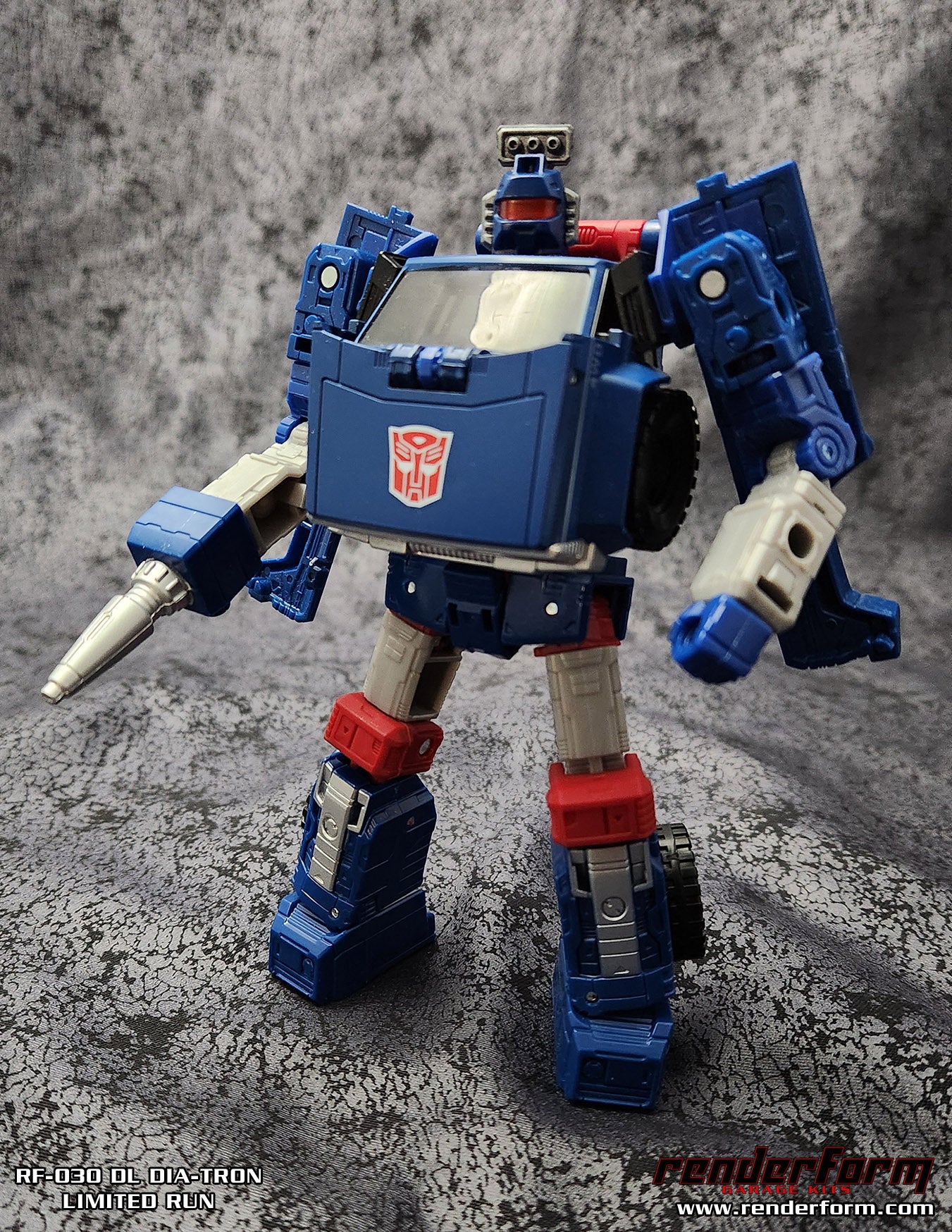 The RF-30 DL DIA-TRON upgrade head replaces the stock head on the DK-3 Breaker figure, and give its a toy accurate head sculpt. The head is comprised of 5 separate parts, cast in colored resin. This head features a red light piped visor. The rear silver part must be removed for transformation.